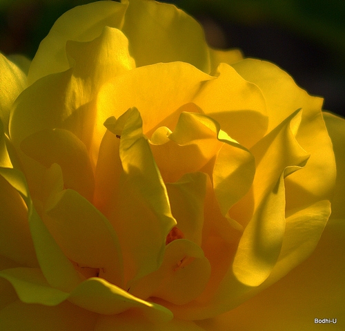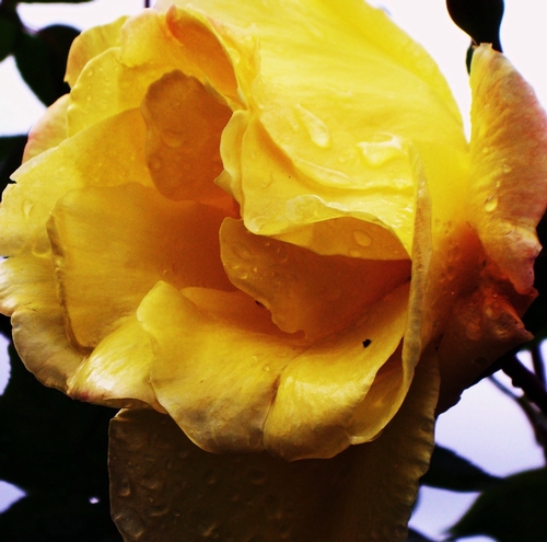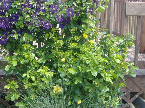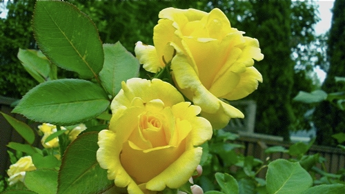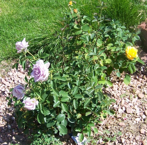 Mellow Yellow has huge deep yellow blooms that lighten over time, with a wonderful fragrance. Its one disadvantage is the fact that the blooms are so large that the canes can't hold them up without support -- this is definitely a rose to cut and enjoy in the vase.
