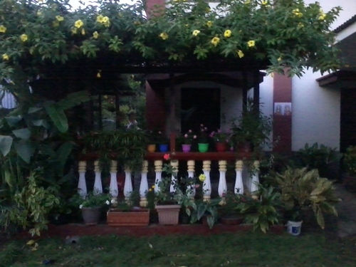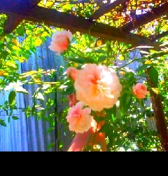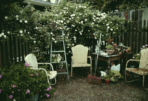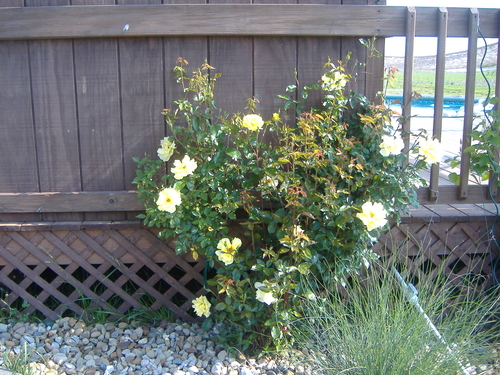 just a nice garden photo of my Lady Banks climbing rose. -