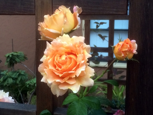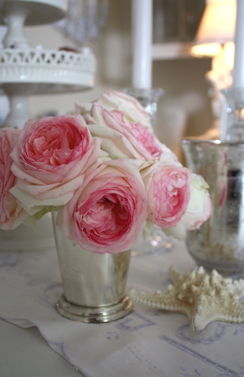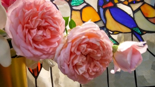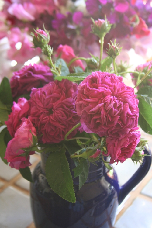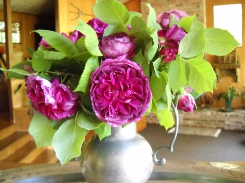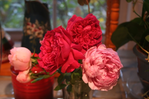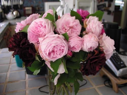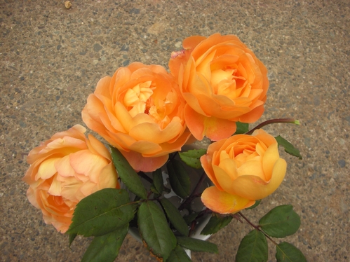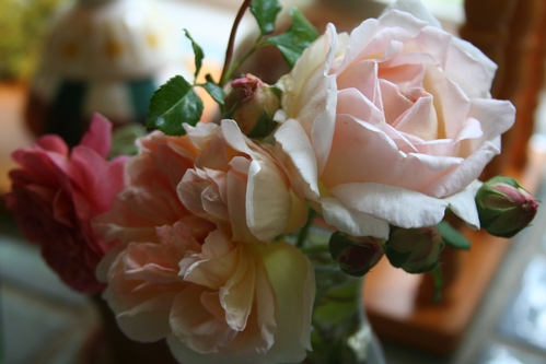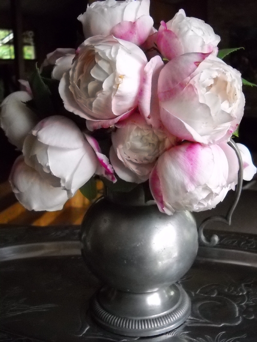 This is a display of Abraham Darby that my wife assembled a few years ago...still one of my favorite rose photos. -