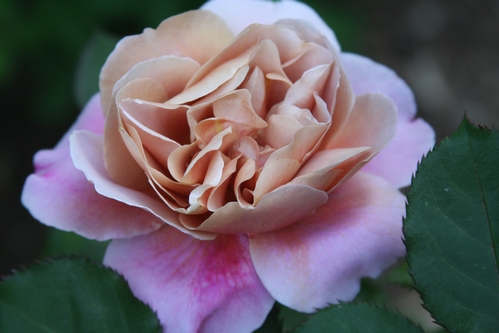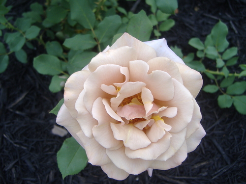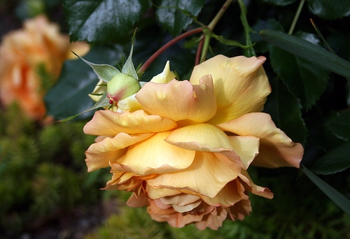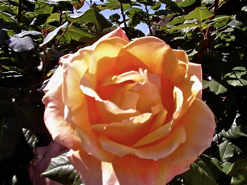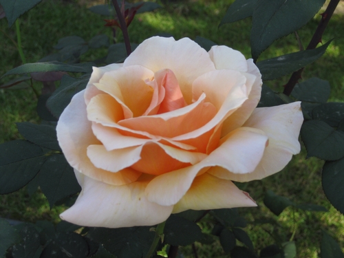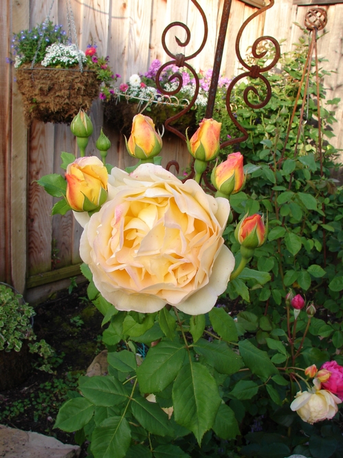 David Austin Rose - A Shropshire Lad: R.A.Beau Natali's Rose Garden in West Central Florida, USA (Tampa Bay Area). VERY disease resistant! Beautifully transitioned yellowish-peachy coloration with no line of demarcation. Creamy overall impression, scent is strong to moderate fruity, a scent you will definitely miss thru the winter months! -