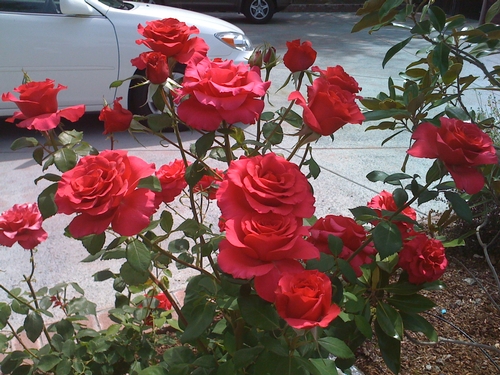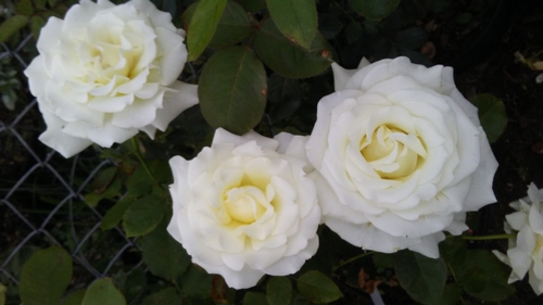 In my west-central gardens...Pope John Paul II. This hearty rose literally hit the ground running. Always multiple blooms open, nearly every time. A slight yellowish cast that goes away as each bloom ages and ends up a pristine white. -