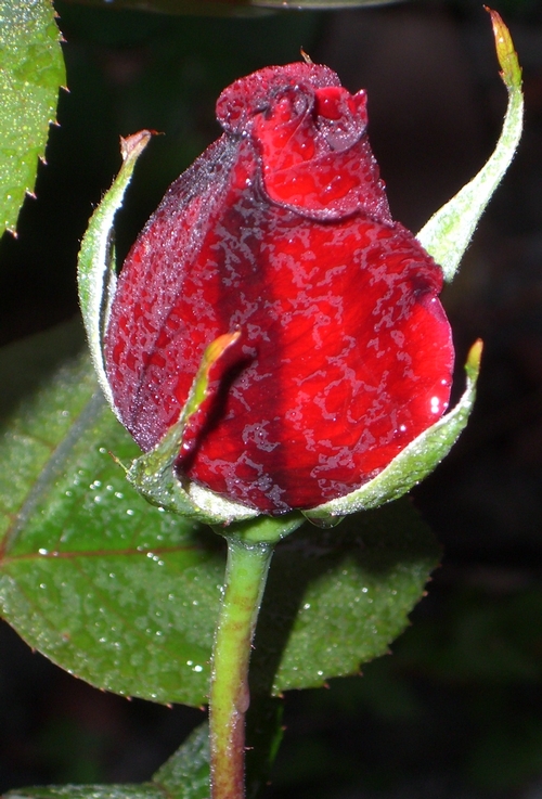 Closed pink rose taken at night -