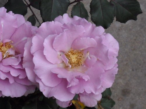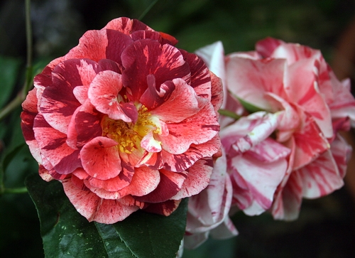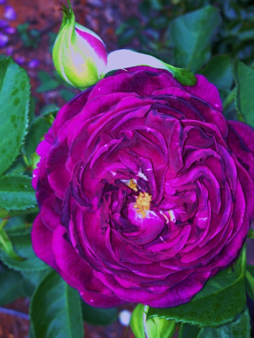 On the right is Cressida... one of my favorites. Sometimes her blooms are too heavy for her stems, but she's still worth it. Christopher Marlow on left. -