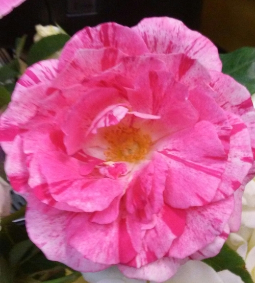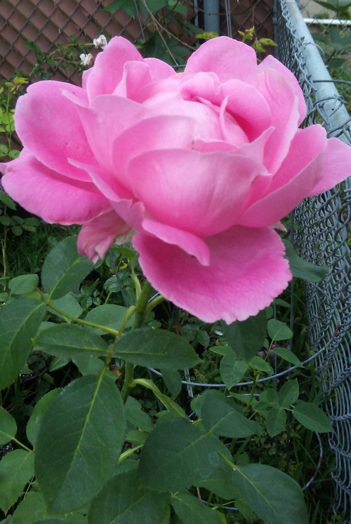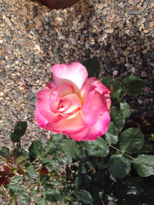 Scentimental bush rose. I wish you could see the whole plant in this pic.... it is nothing but one sprig of greenery and this HUGE bloom! This was its first bloom of the season as well. If it will work this dang hard as barely more than a leafed out stick, just tink how this rose will perform for you -