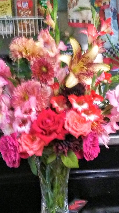 Asst. blossoms from my roses, glads, etc, etc... I love having "too many" flowers (according to my partner) lol. -