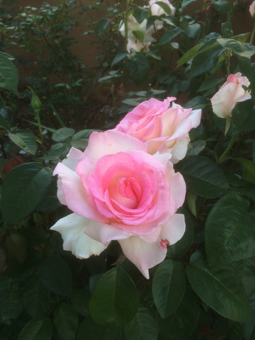 Pink Promise is a vigorous rose that pumps out new blooms on sturdy new canes throughout the season, starting ivory with the edges dipped in pink, and tthen displaying as a more vibrant pink bloom as the buds open. -