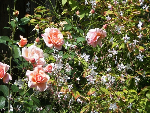 Early autumn Apricot Candy rose with gaura -