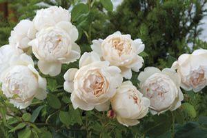 The growth is tall, vigorous and rather informal, with small clusters of blooms held on slightly arching brances. Strawberry Hill is very healthy with glossy, dark green foliage. This is a wonderful choice for a position to the rear of a mixed border, or for a border of shrub roses.