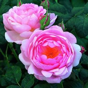 Strawberry Hill bears medium sized, pure rose pink, cupped rosettes of superb quality. Their colour gradually pales to a lighter pink at the edges of the petals, eventually exposing glimpses of yellow stamens at the centre. The blooms are beautiful at all stages.